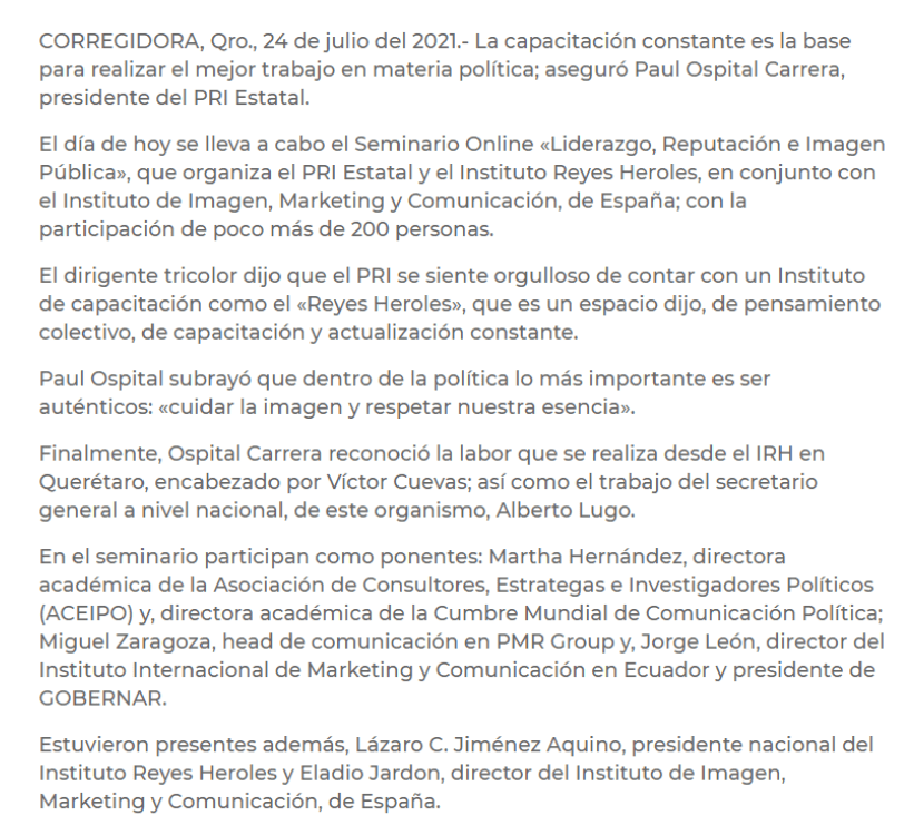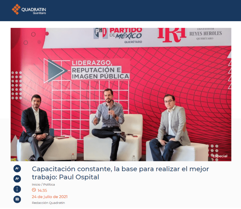 Capacitación constante, la base para realizar el mejor trabajo: Paul Ospital 24Jul 20211 Ago 2021 Comparte esto:Tweet Compartir en WhatsApp (Se abre en una ventana nueva) WhatsApp Email a link to a friend (Se abre en una ventana nueva) Correo electrónico Me gusta Cargando... Relacionado