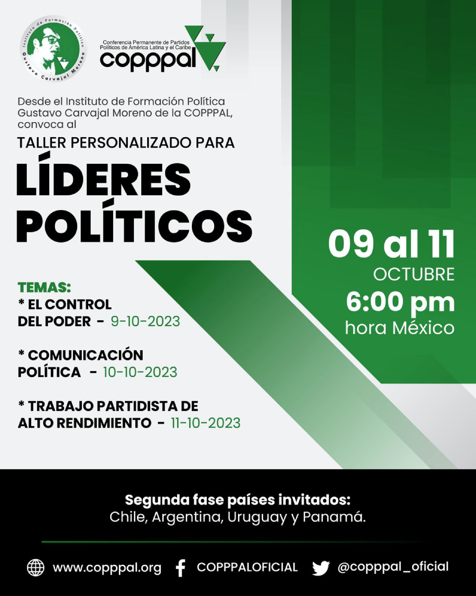 Conferencia «El Control del Poder», en el marco del Taller para Líderes Políticos del Instituto de Formación Política Gustavo Carvajal Moreno, de la Conferencia Permanente de Partidos Políticos de América Latina y el Caribe (Copppal).